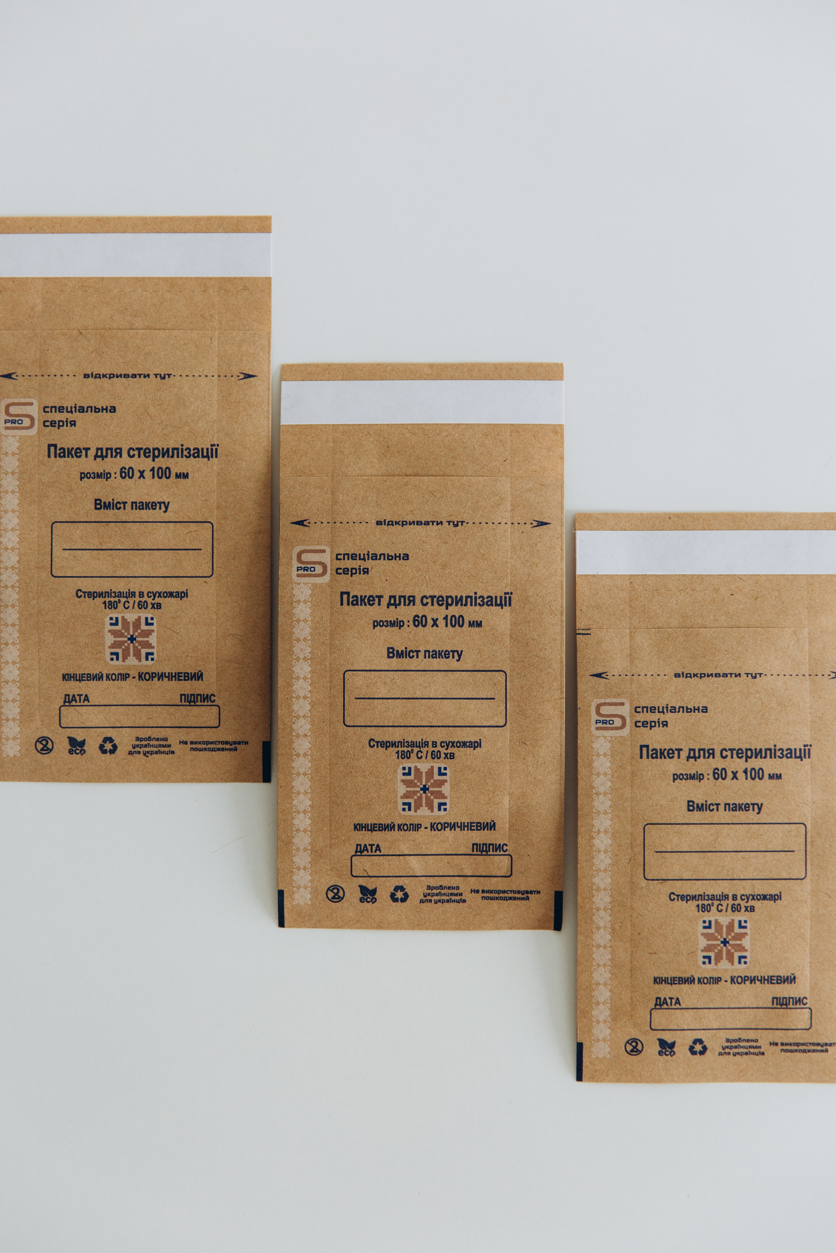 Пакети 60*100 мм БУРІ з крафт паперу PREMIUM якості (100% крафт папір) .Спец серія- лише для сухожару !