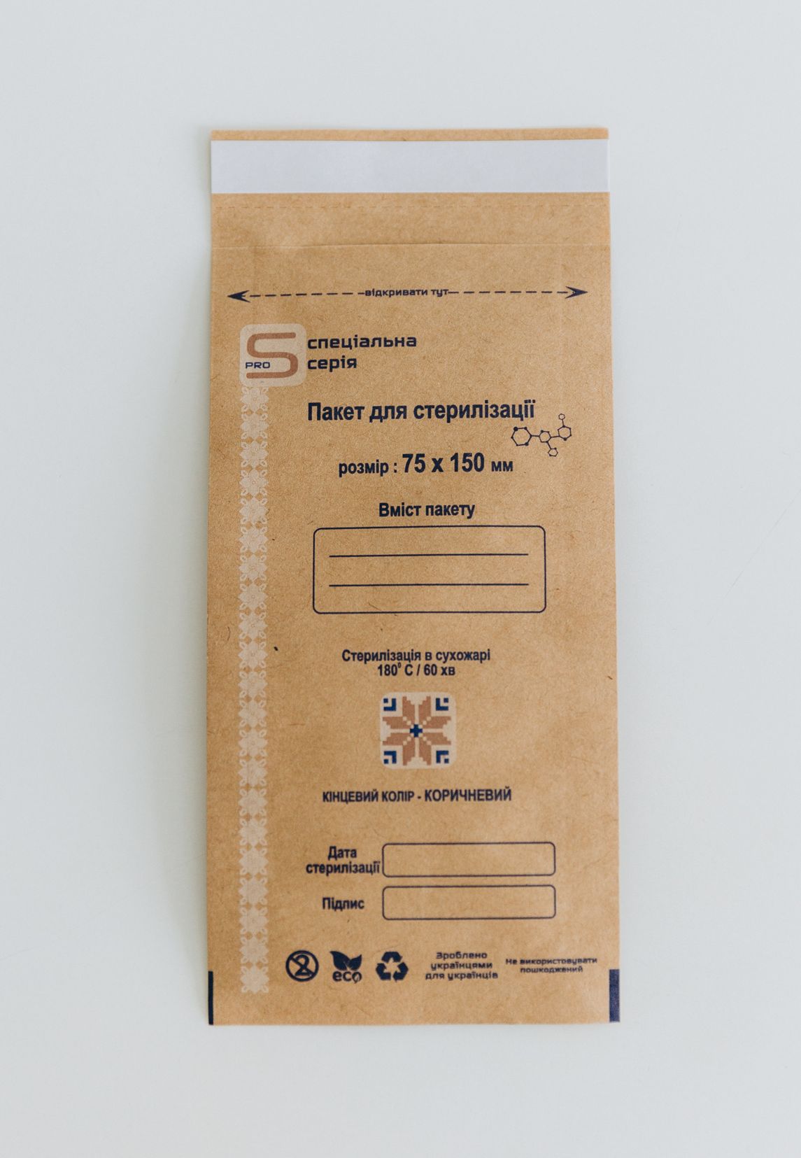 Пакети 75*150 мм БУРІ з крафт паперу PREMIUM якості (100% крафт папір) .Спец серія- лише для сухожару !